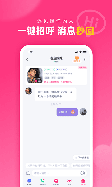 【同城社交】你可以通过文字、语音、视频的多种方式与同城的异性聊天互动,一键相识,快速开聊,秒速回复。