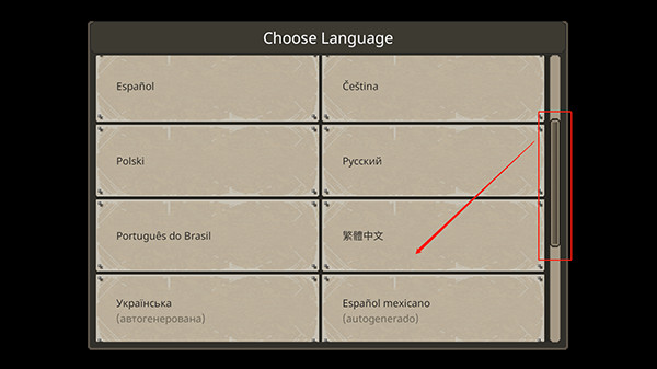 1、初次进入游戏我们需要手动选择语言,下滑找到“繁体中文”字样点击即可切换