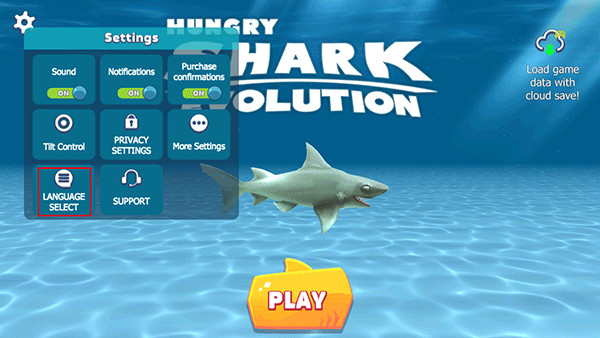饥饿鲨进化国际服怎么设置中文?