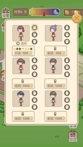 以上的操作完成后,紧接着便要开始接待客人,点击顾客便可进行接待,期间你可以通过招募员工,并为他们分派不同的工作。由于每位员工的属性和专业水平不同,所以在工作分派的过程中要合理分配。