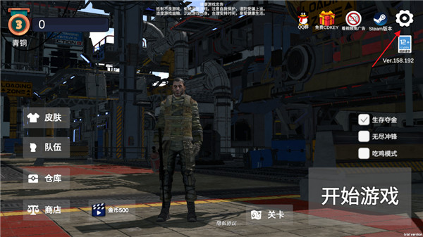 1、在本站下载安装游戏之后,进入到游戏大厅,点击右下方进入到游戏当中,游戏中有两种游戏模式可以选择,首先选择生存夺金进入游戏;
