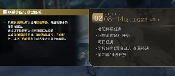 这部分其实没什么好说的,跟随主线指引,一路做主线即可,做完主线第三幕保送联觉等级8级,甚至还会多一点。不用着急做其他任务和解密,跟做主线即可。