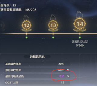 数据坞的等级受吸收的声骸总品阶影响(吸收越多、品质越高、等级越高)