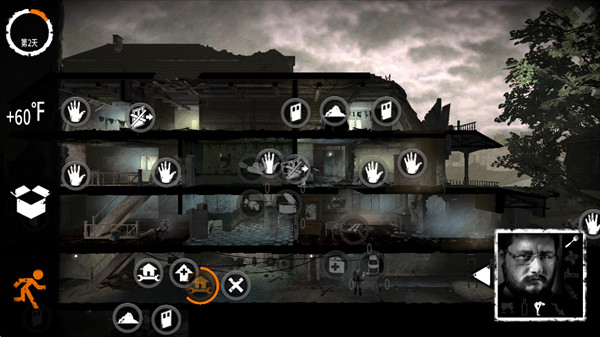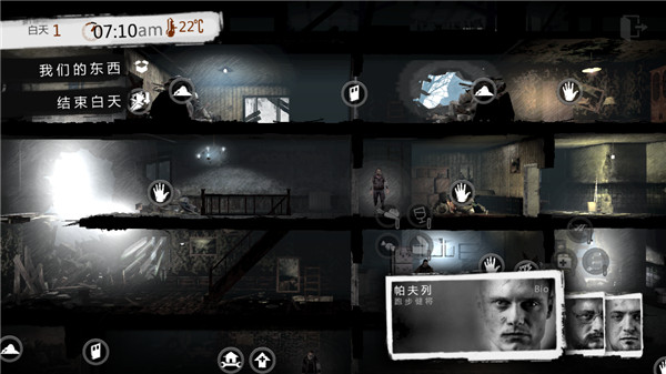 抽烟:角色可以在总物资中有烟时自动抽烟,以减轻失落感。