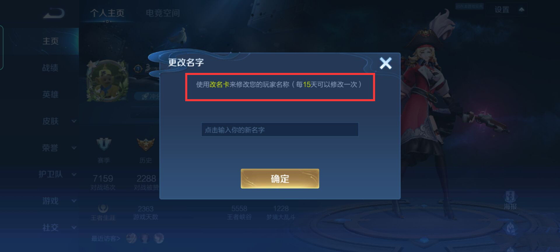 王者荣耀名字改错了无法立即再次修改,因为改名规则规定,玩家每15天才可以修改一次名字,每次修改需要耗费一张改名卡。