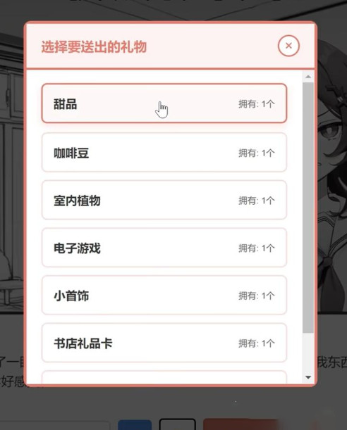 此外,赠送效果受Yuki实时状态影响。当其处于傲娇或可爱性格表现阶段时,甜品类礼物能获得稳定正向反馈;若其情绪处于低落状态,则优先选择她明确偏好的物品(如甜品),可进一步放大好感度增幅。建议结合状态提示与数值反馈,制定个性化送礼节奏。