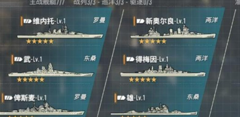 推荐速爆流满编配置为:3战列舰+3巡洋舰+1航空母舰+1潜艇。具体布阵为——前排部署新奥尔良、得梅因、雄;后排配置维内托、俾斯麦、武;航空支援位选用大黄蜂,水下突袭位启用小鲨鱼。整套阵容以“两洋体系”为战术基底,同时触发跨阵营协同效果:激活“两洋灯塔”被动,全队火力与舰载机伤害同步提升。